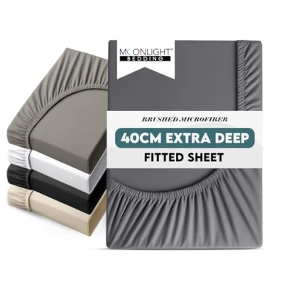 Moonlight Bedding Fitted Sheet 40 Cm Extra Deep Pocket Bed Sheets 16 inch Ultra Soft Bottom Brushed Microfiber Breathable Shrinkage and Fade Resistant (Charcoal, Single)