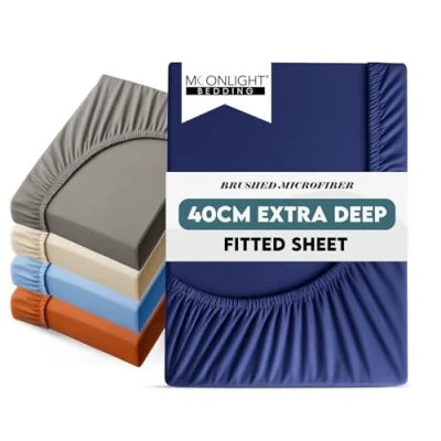 Moonlight Bedding Fitted Sheet 40 Cm Extra Deep Pocket Bed Sheets 16 inch Ultra Soft Bottom Brushed Microfiber Breathable Shrinkage and Fade Resistant (Navy, King)