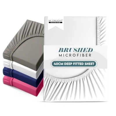Moonlight Bedding Fitted Sheet 40 Cm Extra Deep Pocket Bed Sheets 16 inch Ultra Soft Bottom Brushed Microfiber Breathable Shrinkage and Fade Resistant (White, King)