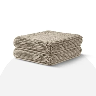 Moonlight Bedding Khaki Bath Mat Non Slip Anti Mould 2 Pack Chenille Bathroom 40x60cm Machine Washable Shower