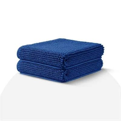 Moonlight Bedding Navy Bath Mat Non Slip Anti Mould 2 Pack Chenille Bathroom 50x80 cm Machine Washable Shower