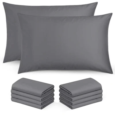 Moonlight Bedding Pillow Cases 10 Pack Grey Pillowcases Envelope Closure Super Soft Brushed Microfiber Standard House Wife Covers, (50 X 75 CM)
