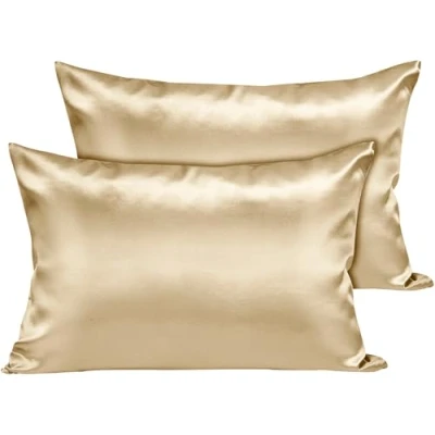 Moonlight Bedding Satin Pillowcases 2 Pack Champagne Silk Pillowcase for Hair and Skin Luxury with Envelope Closure Pillow Case Standard Hotel Quailty (50x75CM)