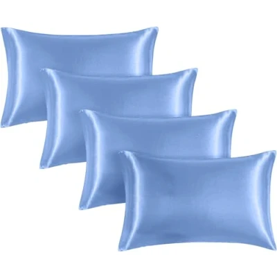Moonlight Bedding Sky Blue Satin Pillowcases 4 Pack Soft & Smooth Feels Like Silk for Hair and Skin Care