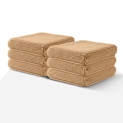 Moonlight Beige Bath Mat Non Slip Anti Mould (6 pack) Mats 40x60cm Machine Washable Chenille Bathroom Super Absorbent Extra Soft Fluffy Shower