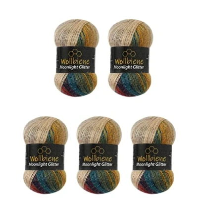 5 x 100 g moonlight glitter wool, total 500 g Length: 550 m per ball, total 2750 metres For needle size 3-3.5 mm Great colours to choose from with glitter