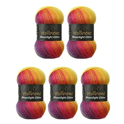 Moonlight Glitter Batik Simli 5 x 100 g Knitting Wool 500 for and Crocheting 20% Metallic Turkish Gradient (2600 rainbow)