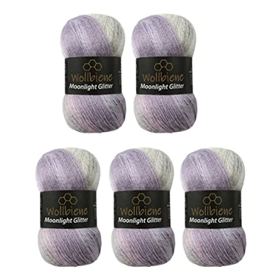 Moonlight Glitter Batik Simli 5 x 100 g Knitting Wool 500 for and Crocheting 20% Metallic Turkish Gradient (2700 Rose Grey)