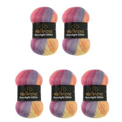 Moonlight Glitter Batik Simli 5 x 100 g Knitting Wool 500 for and Crocheting 20% Metallic Turkish Gradient (3000 Rainbow Pastel)