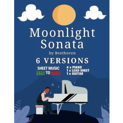 Moonlight Sonata Beethoven Sheet Music: 6 Versions EASY to HARD Piano Book For Beginners Kids or Adults Level from Beginner Advanced ... and Read Music Various Instruments
