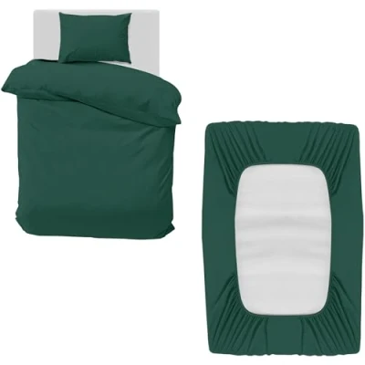 MOONLIGHT20015 3 Piece Single Bedding Set Duvet Cover, Fitted Sheet with Pillow case Soft Brushed Microfiber Emerald