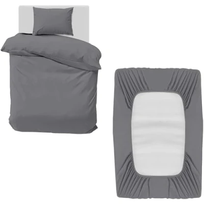 MOONLIGHT20015 3 Piece Single Bedding Set Duvet Cover, Fitted Sheet with Pillow case Soft Brushed Microfiber Grey