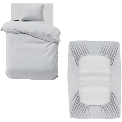 MOONLIGHT20015 3 Piece Single Bedding Set Duvet Cover, Fitted Sheet with Pillow case Soft Brushed Microfiber Silver