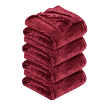 MOONLIGHT20015 4 Pack Fleece Blanket Throws for Sofas 400 GSM Blankets Sofa Bed Throw Breathable, Cuddly, Fluffy & Warm Burgundy, Throw/Single (130 x 150 CM)