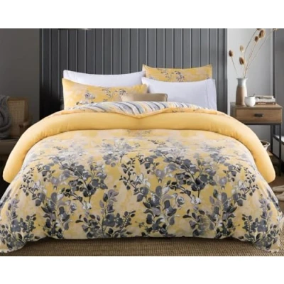 MOONLIGHT20015 Double Bedding Duvet set (200 x 200 cm) with 2 Pillowcases Reversible Printed Ochre Blossom Soft Hypoallergenic Microfiber Cover (Ochre Blossom, Double)