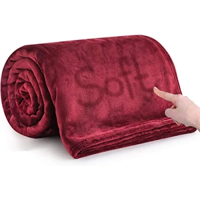 MOONLIGHT20015 Fleece Blanket Throws for Sofas 400 GSM Burgundy Blankets Sofa Bed Throw Breathable, Cuddly, Fluffy & Warm (Burgundy, King (230 x 270 CM))