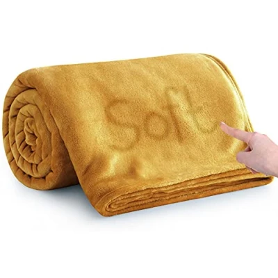 MOONLIGHT20015 Fleece Blanket Throws for Sofas 400 GSM Mustard Blankets Sofa Bed Throw Breathable, Cuddly, Fluffy & Warm (Mustard, Single (130 x 150 CM))