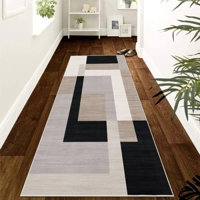 MOONLIGHT20015 Rugs for Hallway 60x220 cm Geometric Style Area Bedroom Living Room Non Slip Modern Printed Carpet Rug Lounge, Milo Neutral