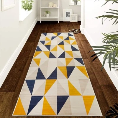 MOONLIGHT20015 Rugs for Hallway 60x220 cm Geometric Style Yellow Triangle Pattern Area Bedroom Living Room Non Slip Modern Printed Carpet Rug Lounge, Brio