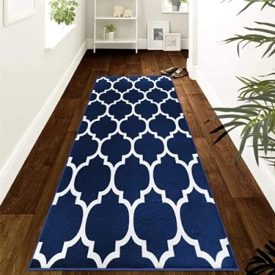 MOONLIGHT20015 Rugs for Hallway 60x220 cm Trellis Style Navy Blue Area Bedroom Living Room Non Slip Modern Printed Carpet Rug Lounge, Ava