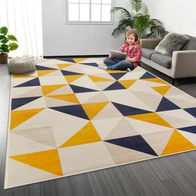 MOONLIGHT20015 Rugs Living Room 80x150 cm Geometric Style Yellow Triangle Pattern Area for Bedroom Large Non Slip Bedside Printed Carpet Rug Lounge, Brio