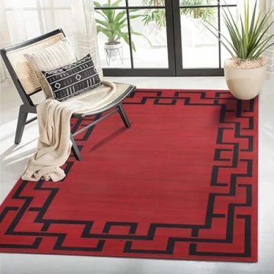 MOONLIGHT20015 Rugs Living Room 80x150 cm Greek Key Style Area for Bedroom Large Non Slip Bedside Printed Carpet Red Rug Lounge, Lexi