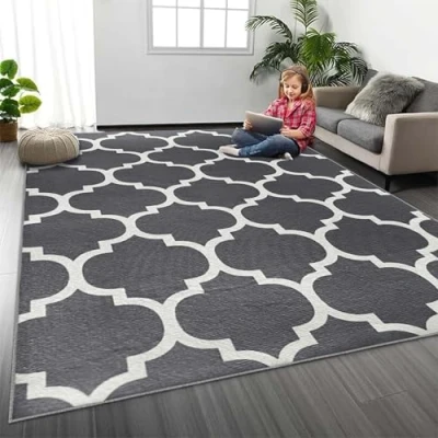 MOONLIGHT20015 Rugs Living Room 80x150 cm Trellis Style Grey Area for Bedroom Large Non Slip Bedside Printed Carpet Rug Lounge, Ava