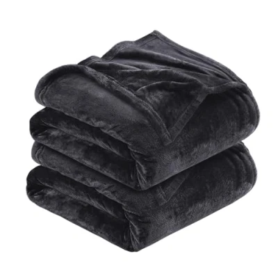 MOONLIGHT20015 Silk Touch Warm 2 Pack Fleece Blankets 400 GSM Throws for Sofa Fluffy Blanket Bed Throw Bedroom, Couch, Travel, Kids, Bedroom Accessories Black, King (230 X 270CM)