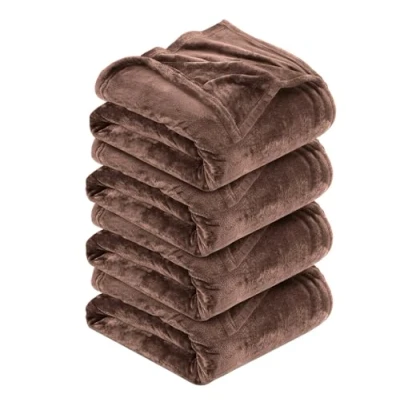 MOONLIGHT20015 Silk Touch Warm 4 Pack Fleece Blankets 400 GSM Throws for Sofa Fluffy Blanket Bed Throw Bedroom, Couch, Travel, Kids, Bedroom Accessories Coffee, Throw/Single (130 X 150CM)