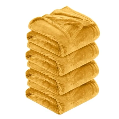 MOONLIGHT20015 Silk Touch Warm 4 Pack Fleece Blankets 400 GSM Throws for Sofa Fluffy Blanket Bed Throw Bedroom, Couch, Travel, Kids, Bedroom Accessories Mustard, Throw/Single (130 X 150CM)