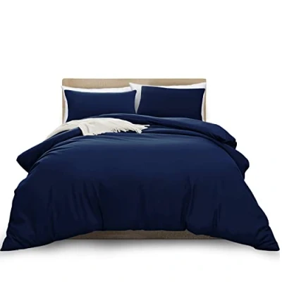 MOONLIGHT20015 Single Duvet Cover Navy Solid Soft Bedding Set with 1 Matching Pillowcase