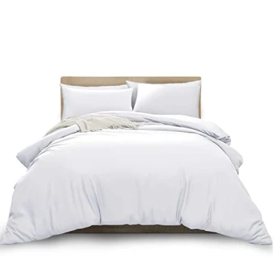 MOONLIGHT20015 Super King Duvet Cover White Solid Soft Bedding Set with 2 Matching Pillowcases