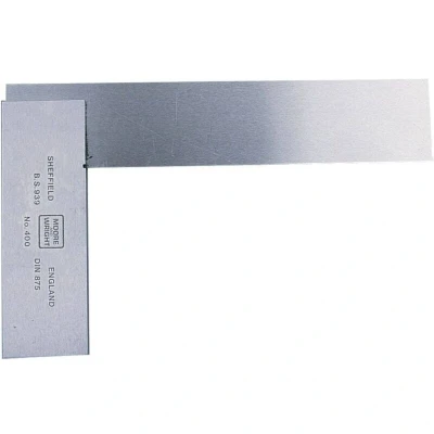 General description The Moore & Wright 4006 Engineer's Square is a precision tool designed for accurate measurements in engineering and workshop applications. It features a hardened and tempered steel blade with a satin chrome finish, ensuring durability and resistance to wear. The square has a blind riveted construction for added strength and reliability, making it suitable for professional use. Its precision ground blade and stock provide high accuracy for layout and measurement tasks. Technical specifications Blade size: 181 mm x 25.4 mm Stock size: 101.6 mm x 25.4 mm Inner working size: 82.4 mm x 155.6 mm Material: Hardened and tempered steel Finish: Satin chrome Standards: Conforms to BS 939 / Grade B Compatibility and accessories Suitable for use in engineering, workshops, and on-site measurements Compatible with other precision measuring tools Installation No installation required; simply use the square for measuring and layout tasks. Usage Use the square to check right angles