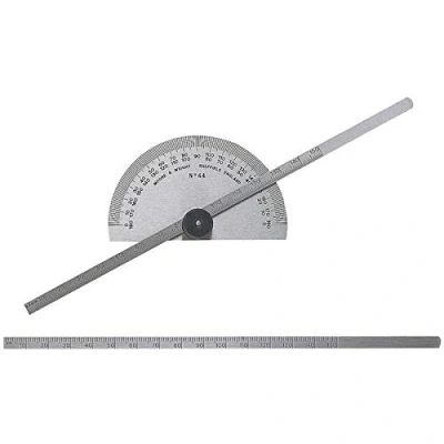 General description This is a protractor type depth gauge designed for precise measurement of depths and angles. It features a full-range rule adjustment with locknut fixation, allowing for accurate and stable readings. Suitable for various DIY and home improvement tasks requiring accurate depth and angle measurements. Technical specifications Size of Base: 79mm (3.11 inches) Width: 5.5mm (0.22 inches) Thickness: 1.0mm (0.04 inches) Length of Blade: 195mm (7.68 inches) Scale graduations: Front face 1/32nd, rear face 1.0mm Protractor plate graduated from 0° to 180° and back to 0° Scale resolution: 1/2° Compatibility and accessories Includes: Protractor Part number: MAW44 Installation Adjust the rule to the desired measurement and fix it using the locknut for stability during use. Position the protractor on the workpiece to measure angles or depths accurately. Usage Use the full-range rule to measure depths or distances. Align the protractor plate to measure angles from 0° to 180°. Fix