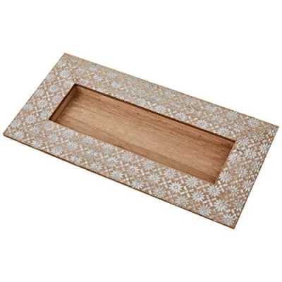 Mopec 14 x 28 cm Wooden Carved Flower Tray, Beige, One Size