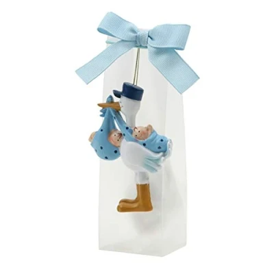 Mopec Magnet Cigueña Loving Children's Twins in Box with 5 Sugar Almonds, Pack of 1, Resin, White, 4.5x14.2x6 cm