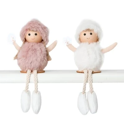 Mopec NA140 Pack of 2 Pink and White Sitting Dolls with Wooden Base, Multicoloured, 10x18x6cm
