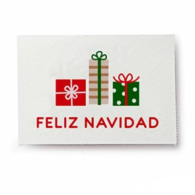 This pack contains 5 sheets of 36 Christmas greeting cards. Text in Spanish Christmas Packaging Accessory They measure 5 x 3.5 cm Available in multiple languages.