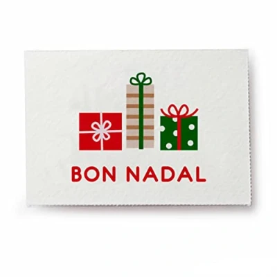 This pack contains 5 sheets of 36 Christmas greeting cards. Text in Catalan Christmas Packaging Accessory They measure 5 x 3.5 cm Available in multiple languages.