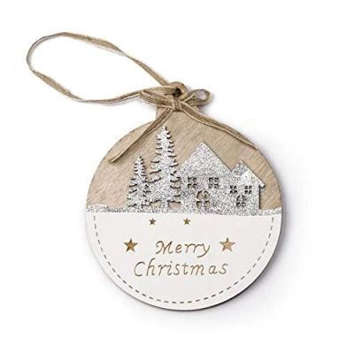 Hanging Christmas Landscape Glitter Wood Measures 15 x 18 cm Wood material