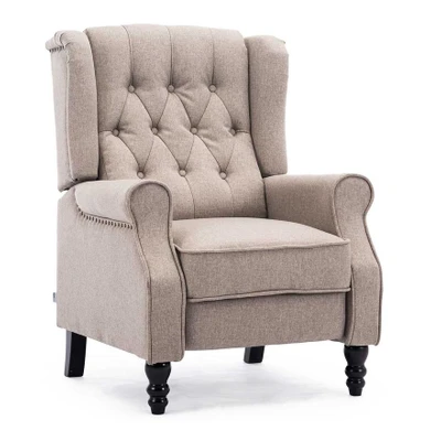 More4Homes ALTHORPE WING BACK FIRESIDE RECLINER FABRIC BONDED LEATHER OCCASIONAL ARMCHAIR SOFA CHAIR (Pumice, Linen)