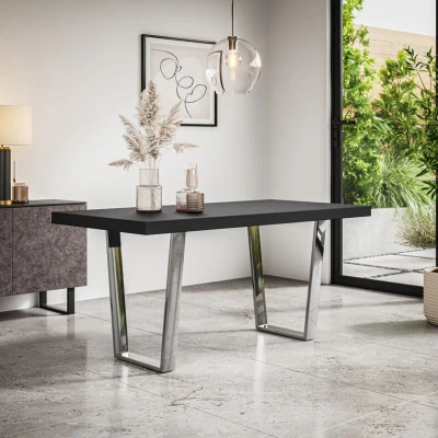 More4Homes ARIA 4 6 SEATER DINING TABLE w CHROME LEGS (Black)