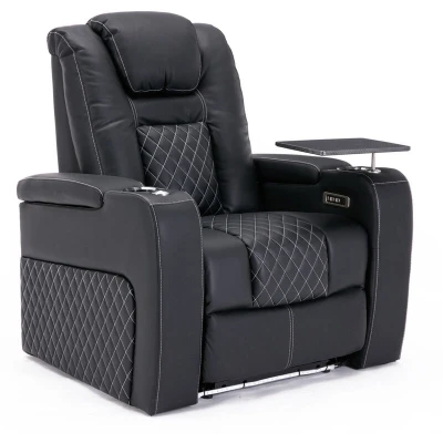 More4Homes BROADWAY HOME THEATER RECLINER SOFA AIR LEATHER, POWER HEADREST, RECLINER, AMBIENT LIGHTING, CUP HOLDERS CINEMA ARMCHAIR CHAIR (Black/White with Tray, 1 Seater)