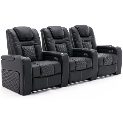 More4Homes BROADWAY HOME THEATER RECLINER SOFA AIR LEATHER, POWER HEADREST, RECLINER, AMBIENT LIGHTING, CUP HOLDERS CINEMA ARMCHAIR CHAIR (Black/White without Tray, 3 Seater)