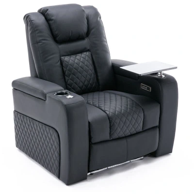 More4Homes BROADWAY HOME THEATER RECLINER SOFA AIR LEATHER, POWER HEADREST, RECLINER, AMBIENT LIGHTING, CUP HOLDERS CINEMA ARMCHAIR CHAIR (Black with Tray, 1 Seater)