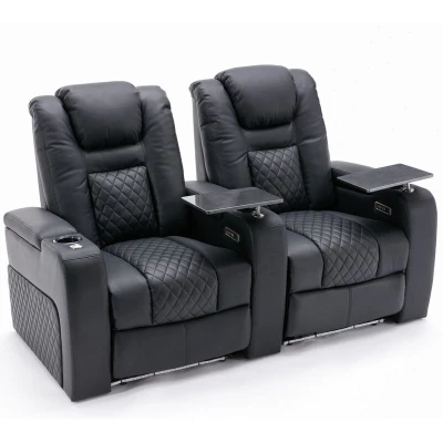 More4Homes BROADWAY HOME THEATER RECLINER SOFA AIR LEATHER, POWER HEADREST, RECLINER, AMBIENT LIGHTING, CUP HOLDERS CINEMA ARMCHAIR CHAIR (Black with Tray, 2 Seater)