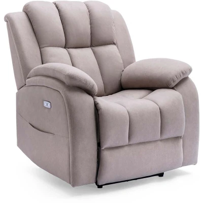 More4Homes BROOKLINE ELECTRIC FABRIC AUTO RECLINER ARMCHAIR GAMING USB LOUNGE SOFA CHAIR PUMICE