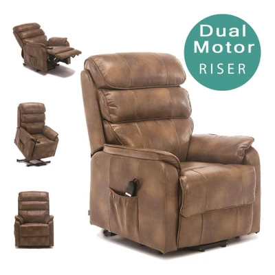 More4Homes BUCKINGHAM DUAL MOTOR ELECTRIC RISE RECLINER BONDED LEATHER ARMCHAIR SOFA MOBILITY CHAIR (Tan)