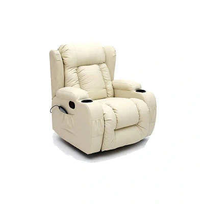 More4Homes CAESAR 10 IN 1 WINGED RECLINER CHAIR ROCKING MASSAGE SWIVEL HEATED GAMING BONDED LEATHER ARMCHAIR (Cream)