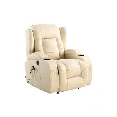 More4Homes CAESAR ELECTRIC AUTO RECLINER MASSAGE HEATED GAMING WING LOUNGE BONDED LEATHER CHAIR (Cream)